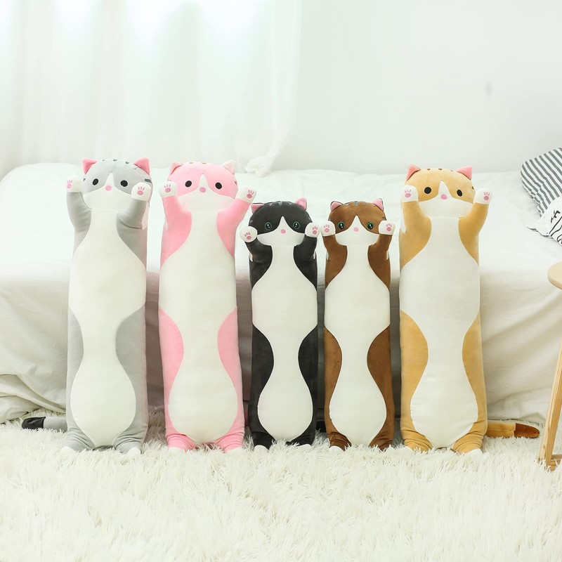 - Cat Plushy Size:Cat pillow length is about 19.7"(50cm),27.5''(70cm),35.4''(90cm),43.3"(110cm),51.1"(130cm)or 59''(150cm) Note: please measure the long cat stuffed animal from its nose to hip, when it recover full.