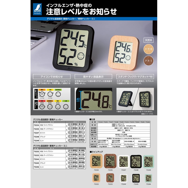 Shinwa 73244 Sokutei Digital Temperature and Hygrometer, Environmental Checker, Mini, White