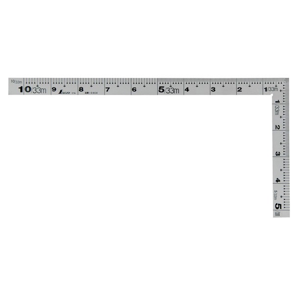 - Accuracy: Straight angle: Less than 0.04 inches (0.1 mm) per 3.9 inches (100 mm) ; Length tolerance: Less than ±0.00 mm ; Front scale: 1 scale ; Short branch: 5 inch outside scale; Back scale: Long branch: 1 measuring outside scale; Short branch: 5 inch (5 mm) ; Shape: Same thick; Material: Stainless steel