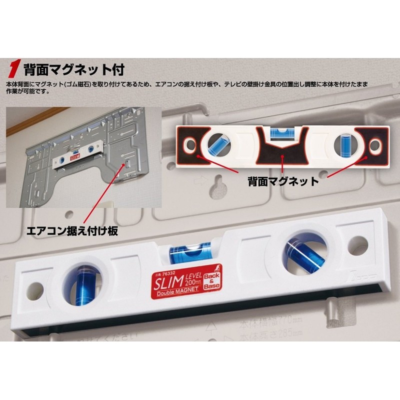 シンワ測定(Shinwa Sokutei) スリムレベル 背面マグネット付 白 200mm 76332