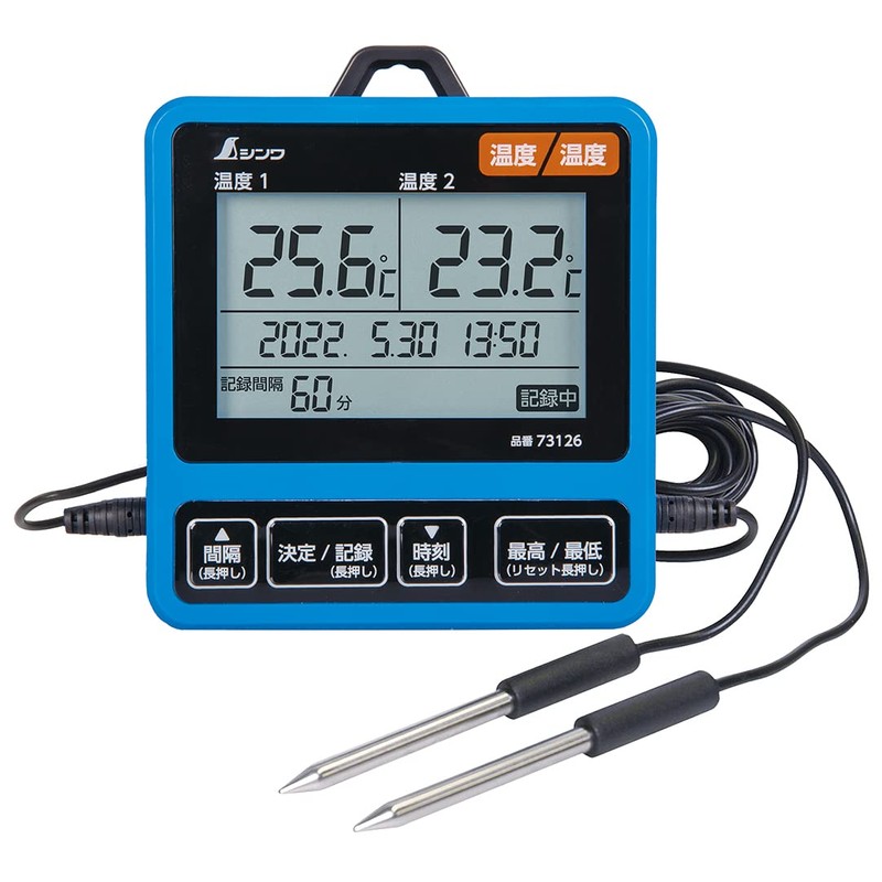 Shinwa Sokutei 73126 Digital Thermometer I with Data Log Function Separating Twin Probe, Dustproof and Waterproof