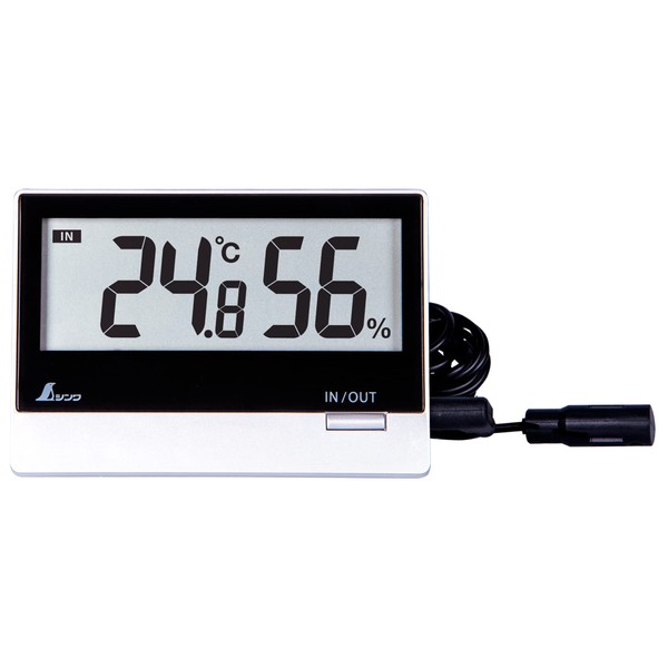 Shinwa Sokutei Digital Thermometer/Hygrometer, Smart B, Indoor/Outdoor Waterproof External Sensor 73119 Silver