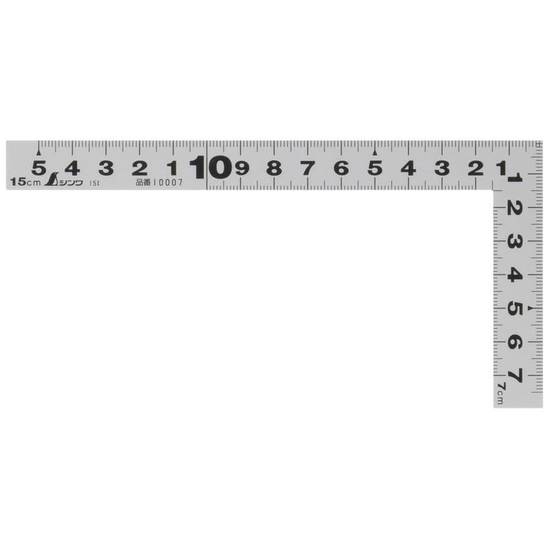 Shinwa Sokutei Measuring Square, Flat, Silver, Same Scale on Front and Back