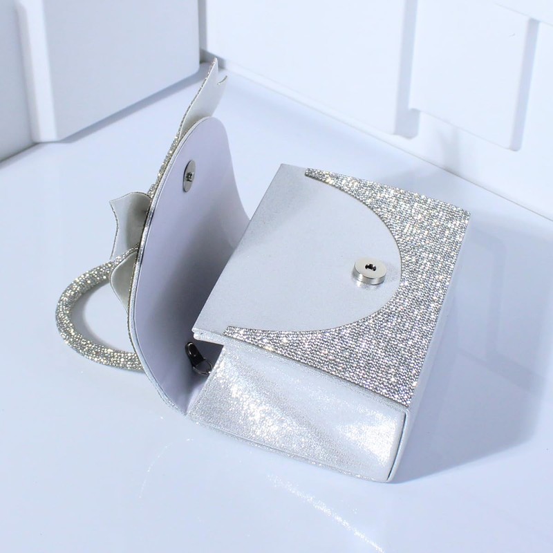 Shiny Dinner Bag Handbag Rhinestone Bow Box Bag Small Square Bag Diagonal Bag Handbag (silver)