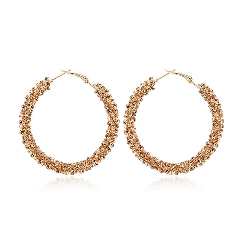 Shiny Large Hoop Earrings for Women Girls Boho Rhinestone Big Wrapped Hoops Dangle Huggie Earring Lightweight Comfortable Sparkle Wedding Christmas Birthday Jewelry Gifts 50mm (Champagne)