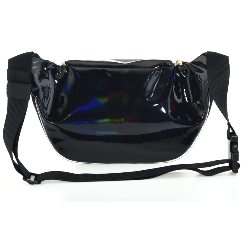 Shiny Neon Fanny Bag for Women Rave Festival Hologram Bum Travel Waist Pack (Black)