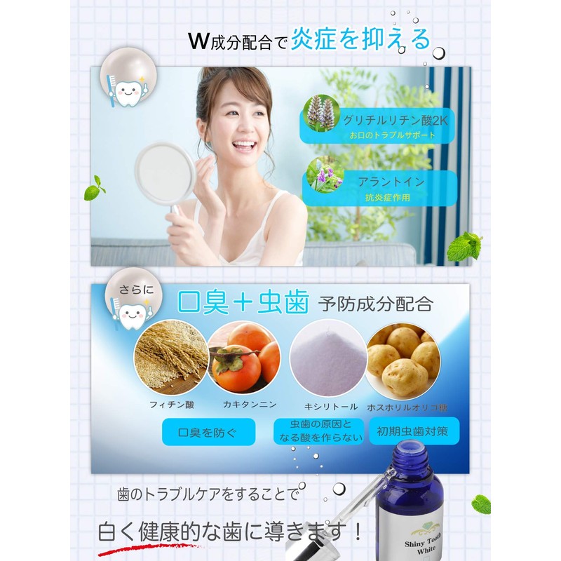 - The oral environment is hard to notice by yourself. Just apply 1 or 2 drops of your teeth and brush it to prevent breath odor and whitening