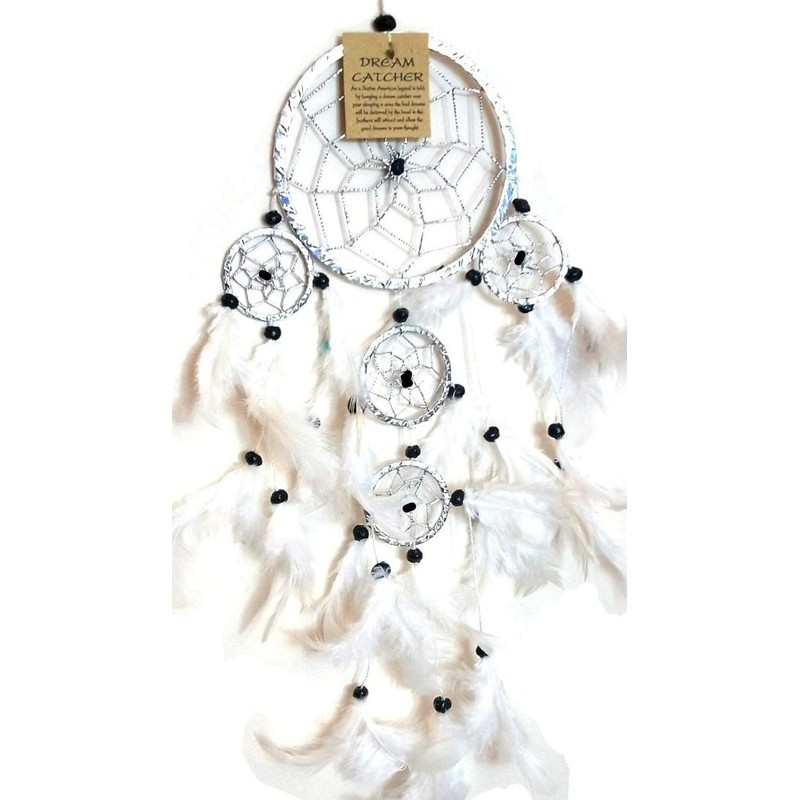 SHINY WHITE & SILVER DREAM CATCHER BEAUTIFUL DREAMCATCHER WITH FEATHERS