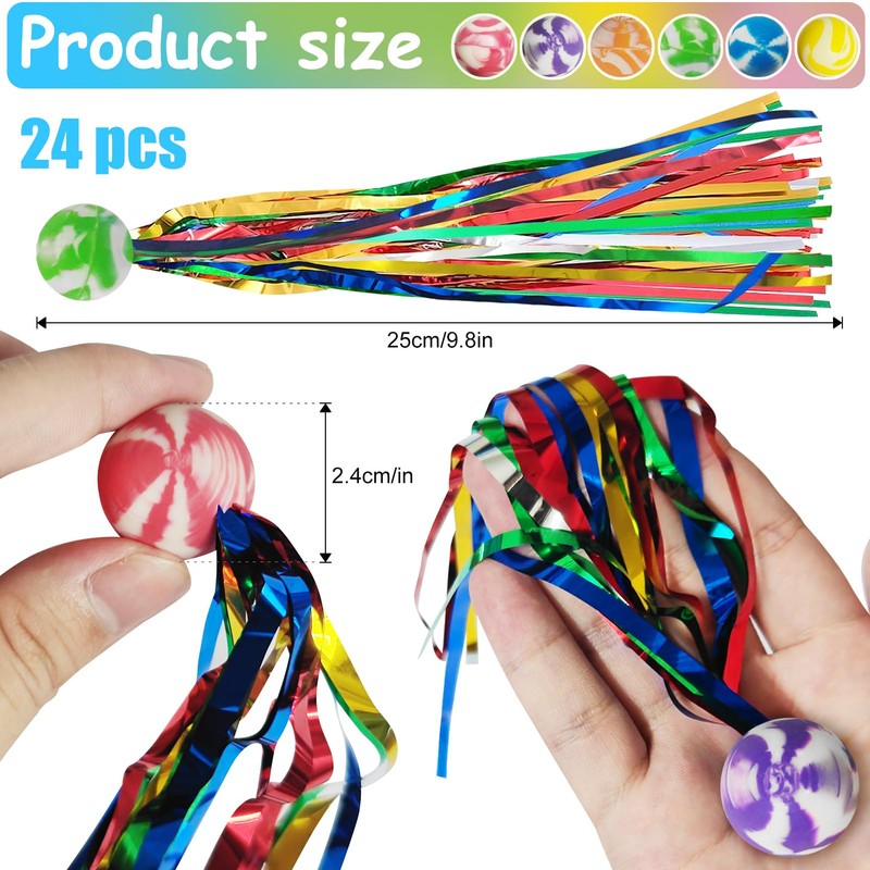 - Package includes: 24 pieces jumping balls with coloured ribbons. Enough quantity can meet your different needs.