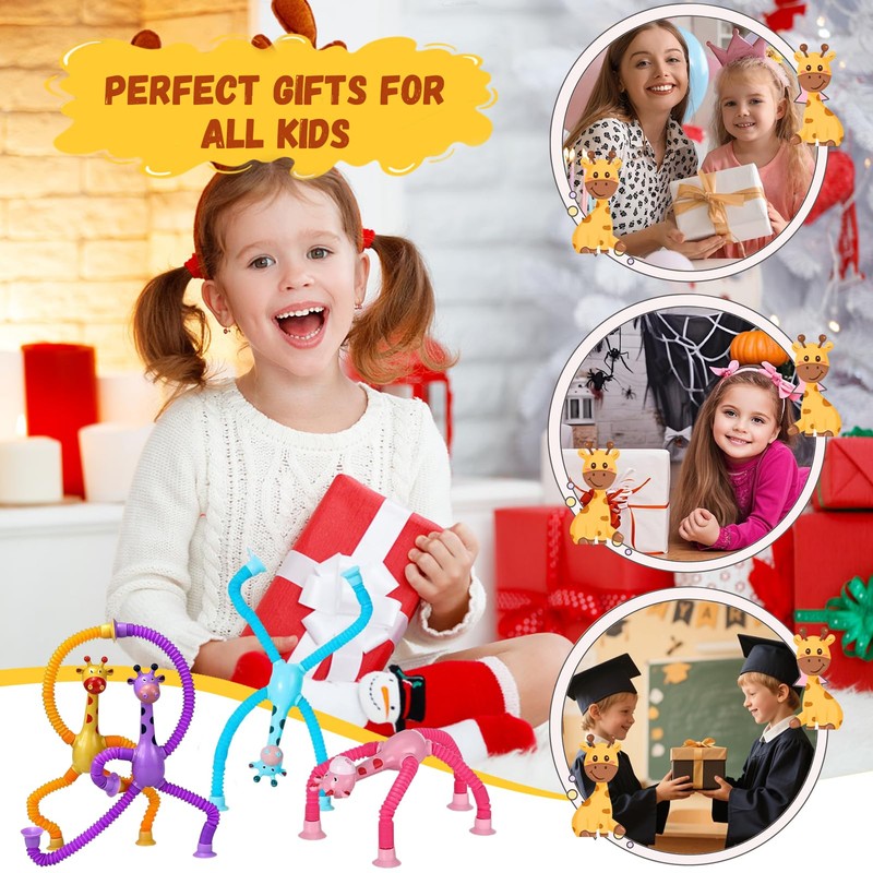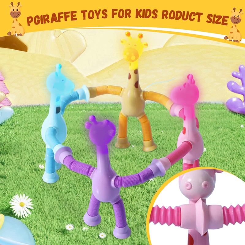 - Luminous design: when you shake the head of the giraffe, it automatically lights up in bright colours. This fidget toy is rich in colours and can be transformed into different shapes, with its four telescopic giraffe leg tubes with suction cups, it can be rotated and stretched as desired. In this way, children can explore different things postures and shapes, innovative skills to improve children's concentration.