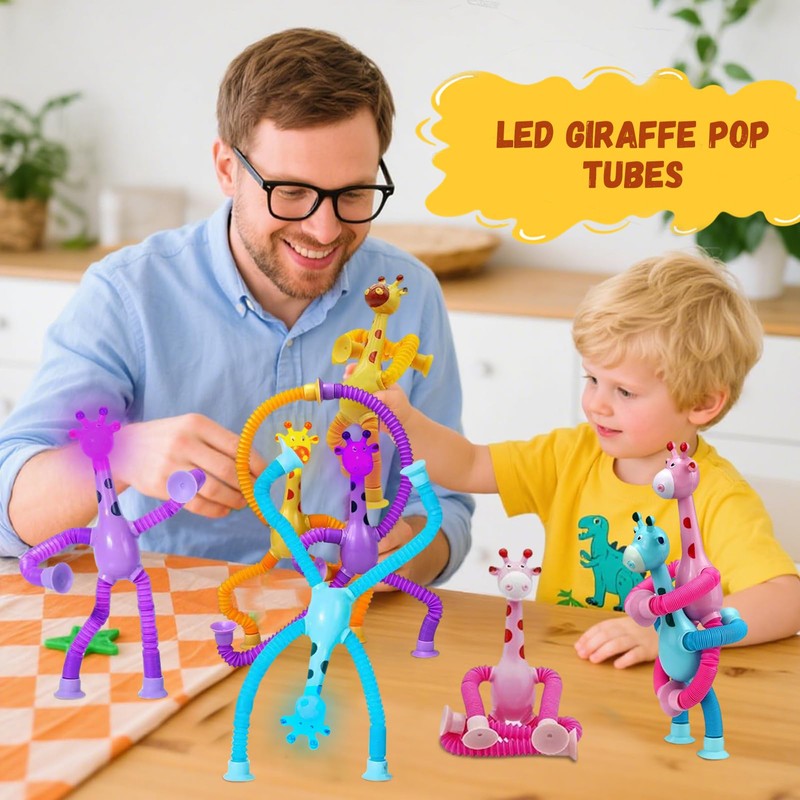 - Luminous design: when you shake the head of the giraffe, it automatically lights up in bright colours. This fidget toy is rich in colours and can be transformed into different shapes, with its four telescopic giraffe leg tubes with suction cups, it can be rotated and stretched as desired. In this way, children can explore different things postures and shapes, innovative skills to improve children's concentration.