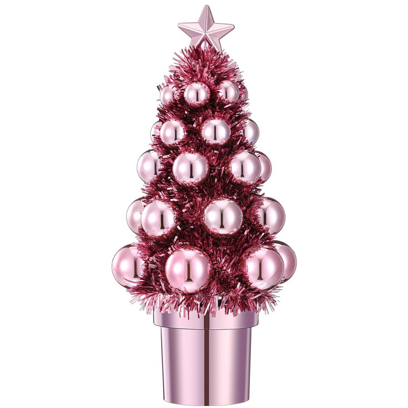 ShinyRelief 7 Inch Mini Christmas Trees Christmas Ball Tree Decorations Small Tabletop Christmas Trees with Xmas Star Topper Base for Christmas Holiday Party Decoration(Pink)