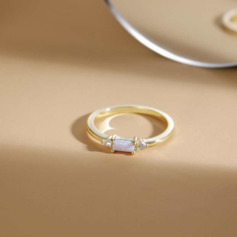 • UNIQUE DESIGN : This baguette opal eternity ring brings you both elegance and dainty. The 14K gold plated stacking wedding band can be worn alone or stacked with other engagement rings