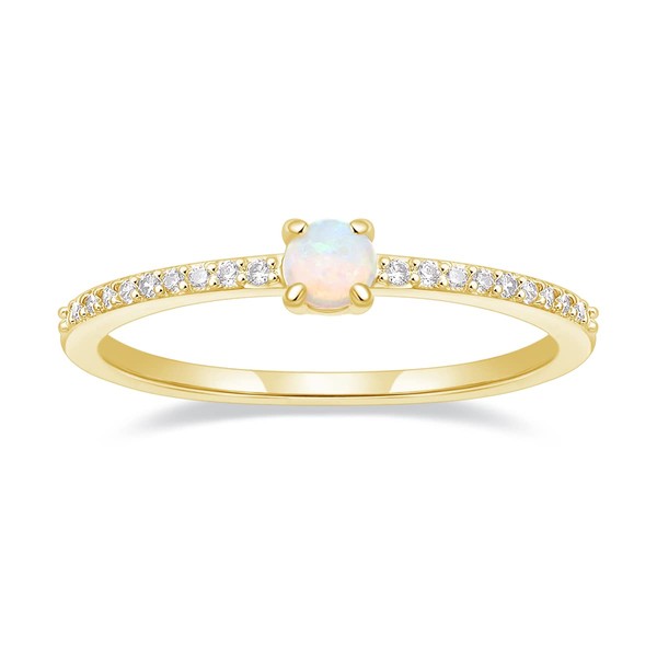 SHINYSO Wedding Band for Women 14K Gold Plated Opal Cubic Zirconia Thin Stacking Half Eternity Engagement ring for Her Size 4-10 (Gold,Size 7)