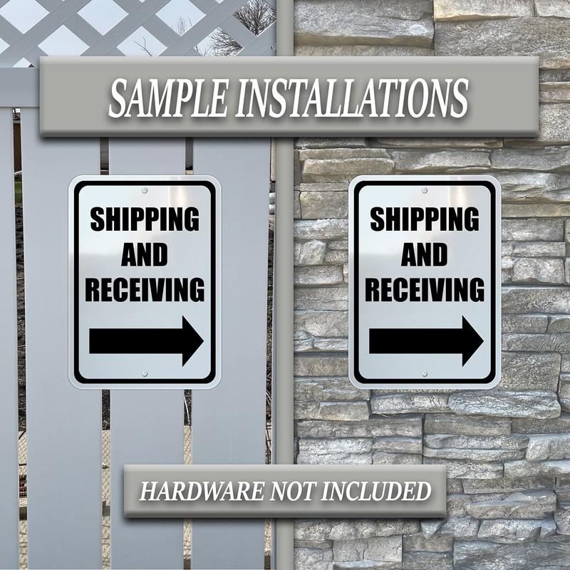Shipping and Receiving Sign, Right Arrow Directional, Black, Mounting Holes, 10" by 14"