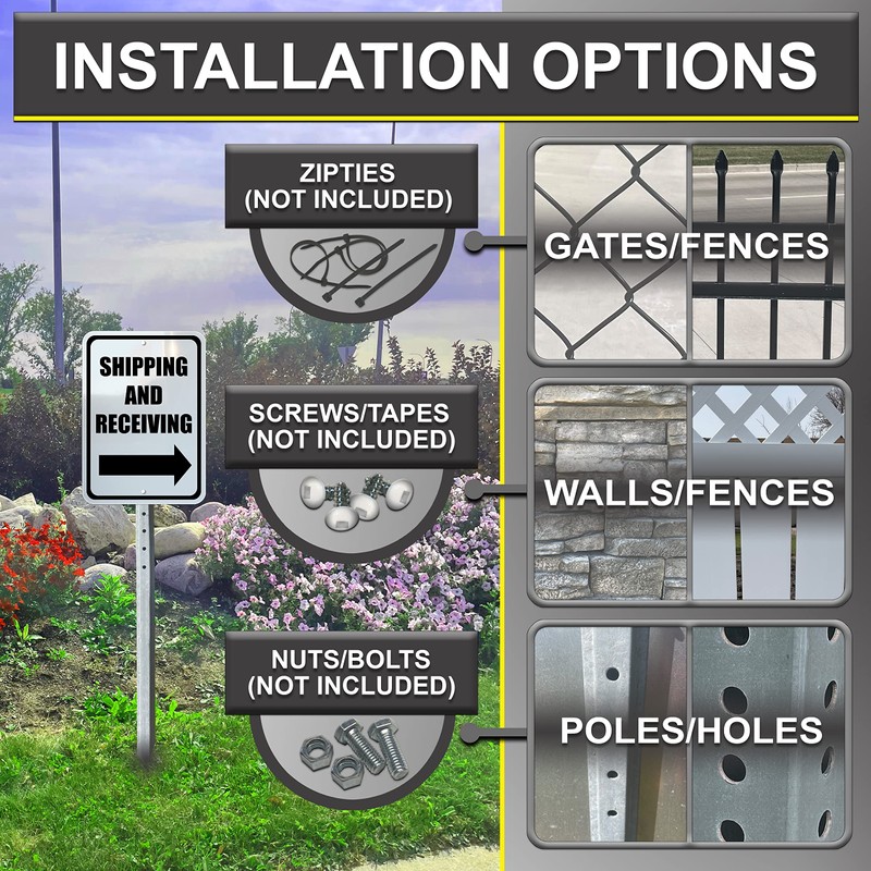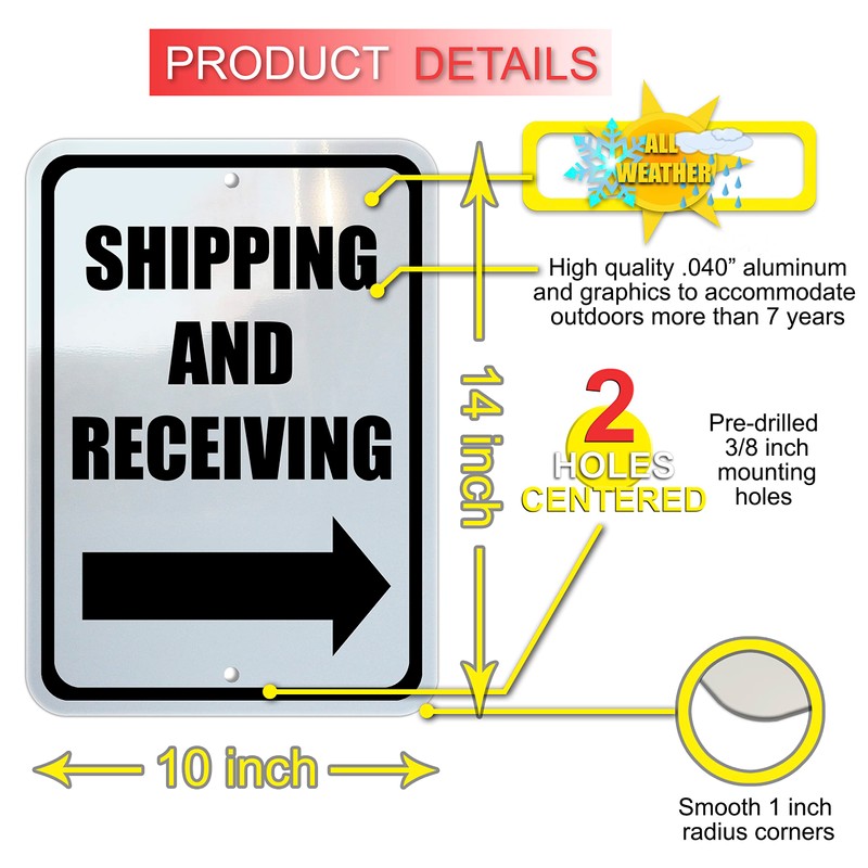 Shipping and Receiving Sign, Right Arrow Directional, Black, Mounting Holes, ...