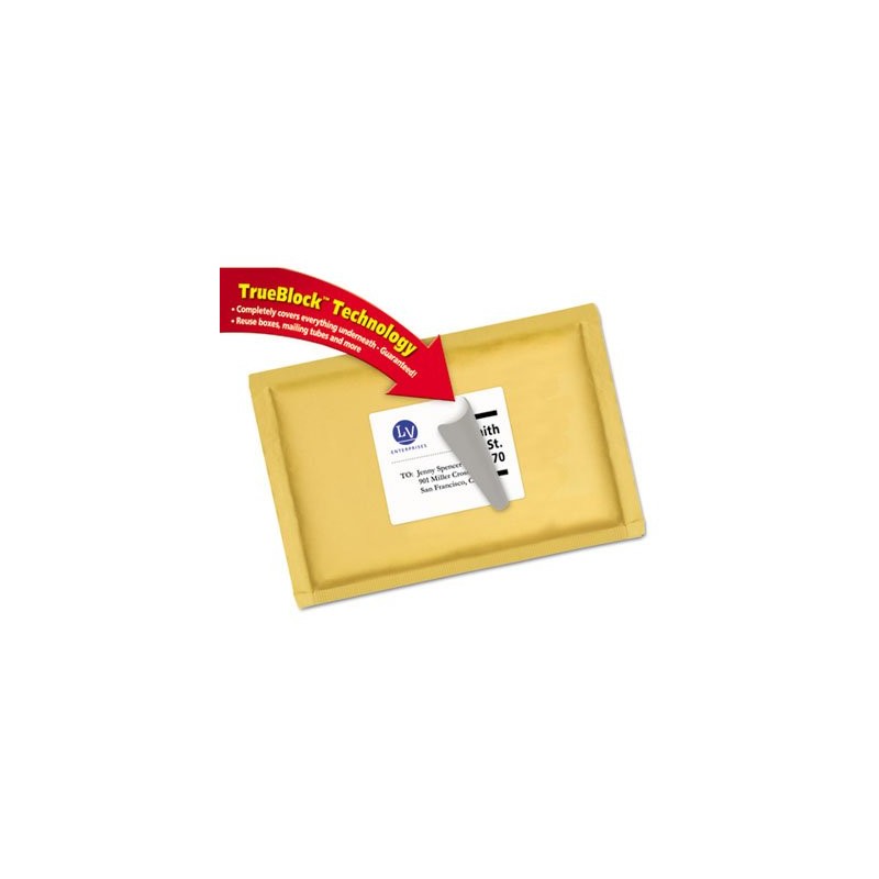 Create professional looking labels quickly. Bright white labels with TrueBlock� Technology are guaranteed to completely cover everything underneath so you can reuse mailing tubes, boxes and more. Easy to customize using free Avery design tools and templates. This product was made from wood that came from a certified managed forest.