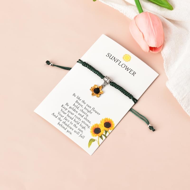 - The sunflower bracelet comes packaged with a beautiful card featuring an uplifting sunflower message, perfect inspirational gifts for daughter, sister, best friend or someone who needs encouragement or a reminder to stay positive