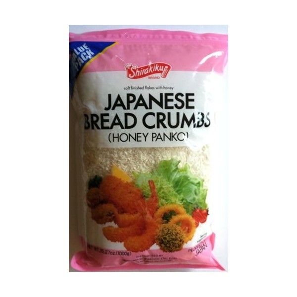 This is a huge 2.2 pound bag of Japanese Panko Bread Crumbs. Make your own crispy shrimp or vegetable tempura or use on any meat that calls for bread crumbs (even meat cutlets). A very light and fluffy, slightly sweet, bread crumb that tastes so delicious!