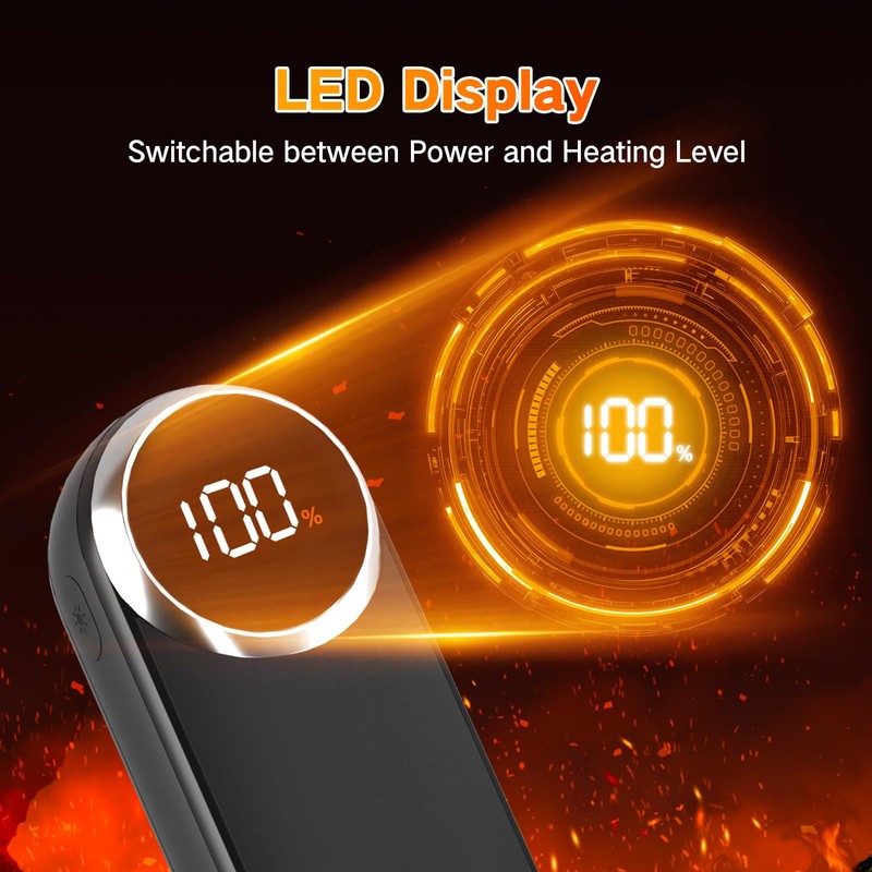 - [1 second quick heating] This rechargeable hand warmer can be opened by long press, 1 second quick heating, can provide double-sided heating, provide 3 kinds of temperature, double click to check the battery power, the temperature range from 113°F-122°F-131°F for you to choose, the rechargeable hand warmer can work when one of them is out of power, the other can still work. Hand warmer is a warm solution for outdoor activities in winter.