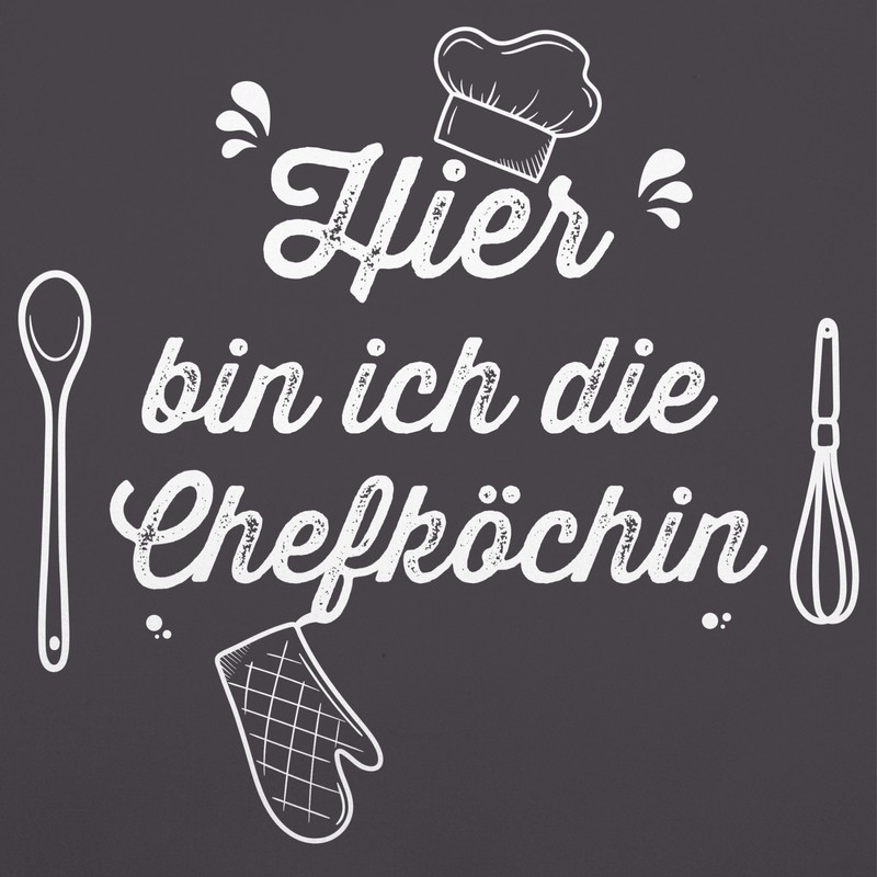 - The right design for cooks: partners and friends will love to make hobby chefs happy with this fun motif. The funny design "Hier bin ich die Chefköchin" is perfect for all chefs and hobby chefs and you make the right choice if you are looking for "women's cooking apron". What are you waiting for? Strike directly!