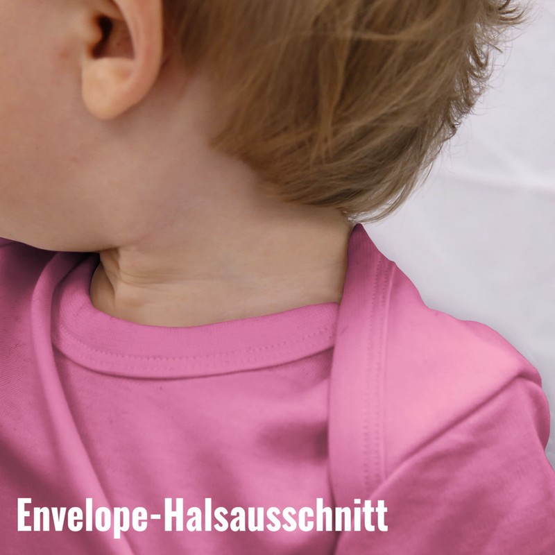 The baby bodysuit is made from 100% cotton. Thanks to an envelope neckline, narrow edged neck and armholes and the soft, elastic fabric, the baby bodysuit is particularly comfortable and allows maximum freedom of movement. The tone-on-tone press studs complete the picture wonderfully. By the way, these are nickel-free and completely harmless to health. So it can be chewed on it. The short-sleeved bodysuit is a basic baby clothing, a must-have in any baby wardrobe and can become a favourite piece with the matching funny saying or cool motif.