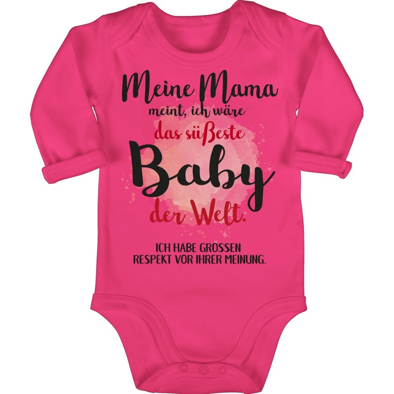 Shirtracer - Bodysuit long sleeve girl boy - romper & - Meine Mama meint, ich wäre das süßeste Baby der Welt, 2 Fuchsia