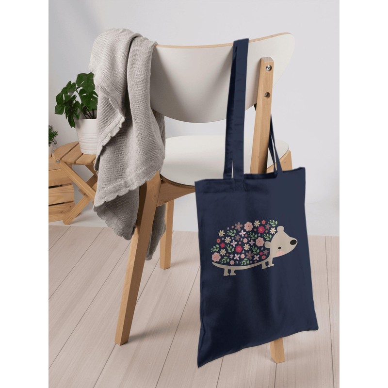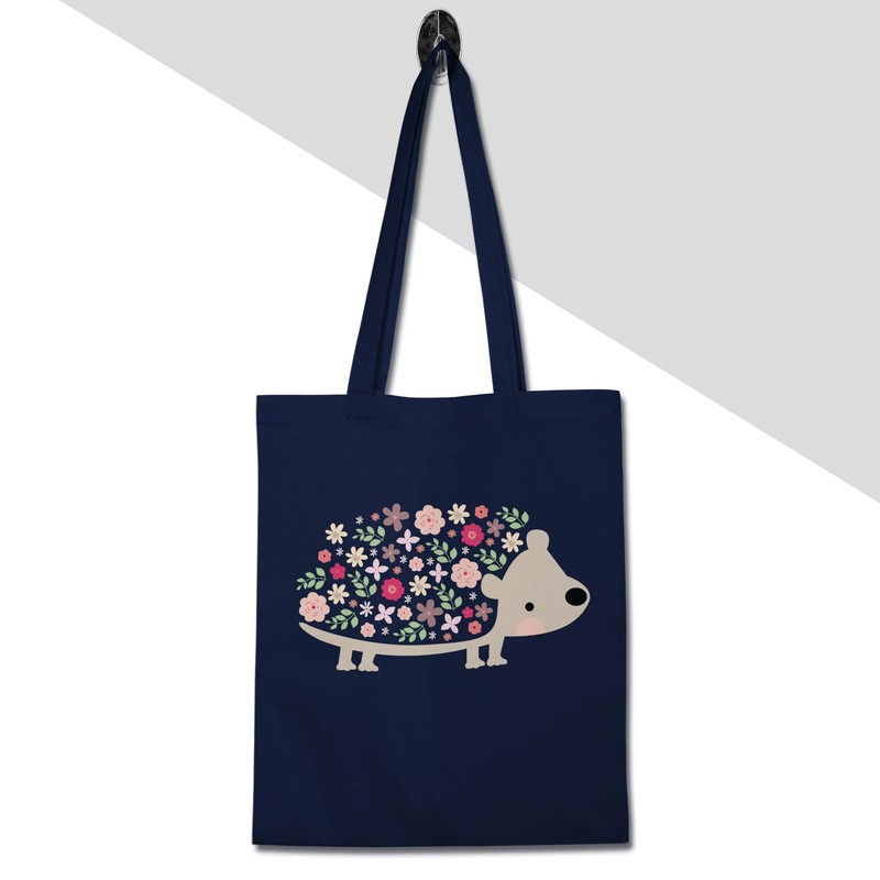 Shirtracer - Cotton Bag - Easter Gift Easter - Cute Hedgehog Spring Animals with Flowers, 3 Navy Blue