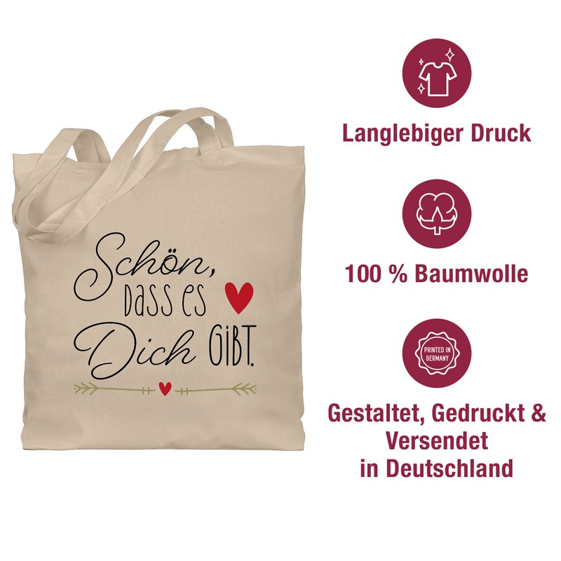 Shirtracer - Cotton Bag - Valentine's Day Bags - Schön dass es dich gibt -, 2 natural white