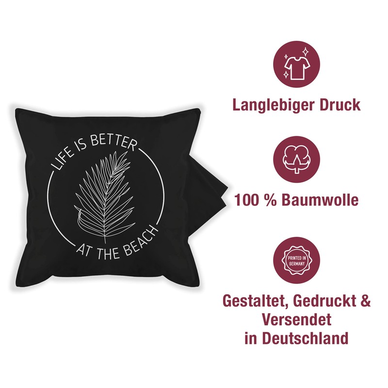 Shirtracer Cushion Cover - Statement - Life is Better at The Beach Palm Leaf - Chilling Outfit - White - 50 x 50 cm - Black - Statements Beach Cushion Sayings