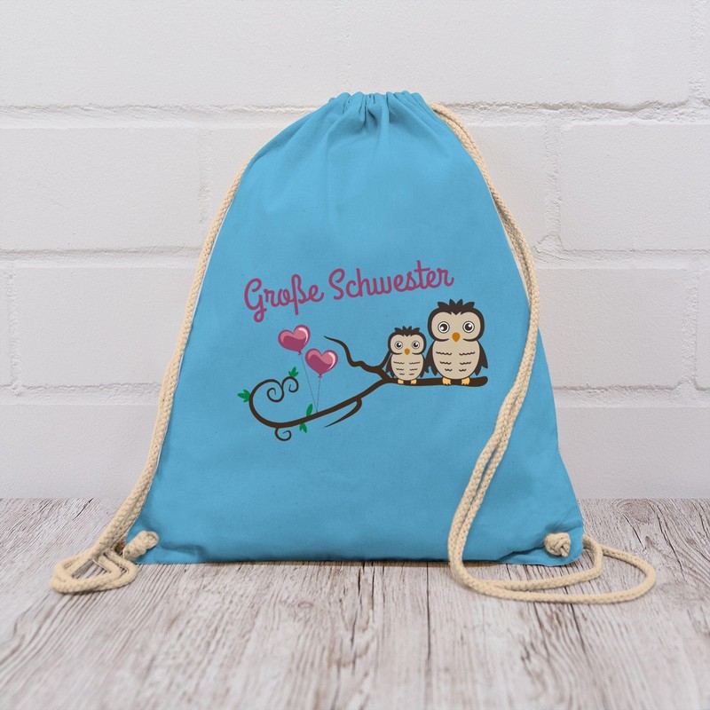 Shirtracer - Gym Bag Backpack - Siblings Brother and - Big Sister Cute Owls, 1 Light Blue