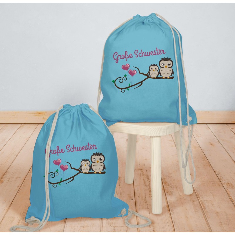 Shirtracer - Gym Bag Backpack - Siblings Brother and - Big Sister Cute Owls, 1 Light Blue