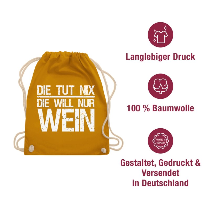 Shirtracer - Gym Bag Backpack - Women's Gift - Die tut nix die will nur Wein I Weinliebhaber Weintrinker, 12 Mustard Yellow, Unit size