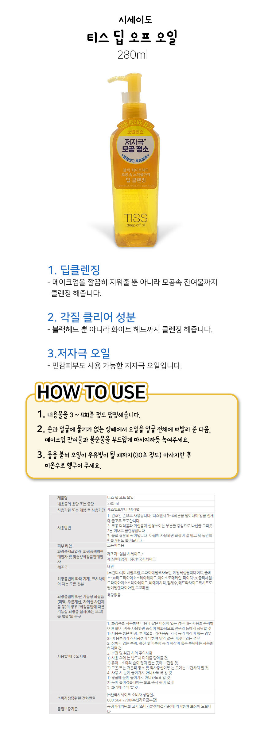 상품명   시세이도 티스 딥 오프 오일 280ml 3개 Ss / 1개