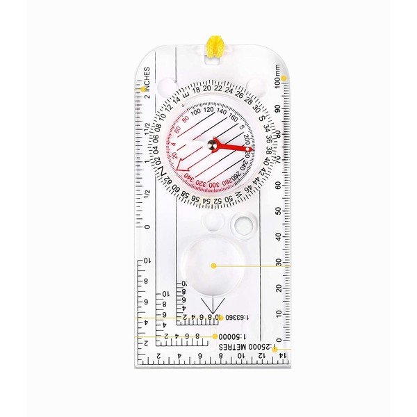 - Multi-Scale&High Precision:1:25000, 1:50000, 1:63000 precision measuring scales,to point you to the most accurate journey.Direction of travel arrow, index line and magnetic (N) needle have luminous markings,you can use it even in the dark night