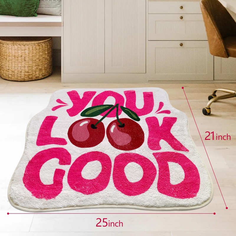 SHIYUE You Look Good Bath Mat Cute Cherry Funny Bathroom Rug, Soft Absorbent Water Non Slip, Superior Washable Microfiber Cool Shower Preppy Decor Rug (21"x25"Pink)