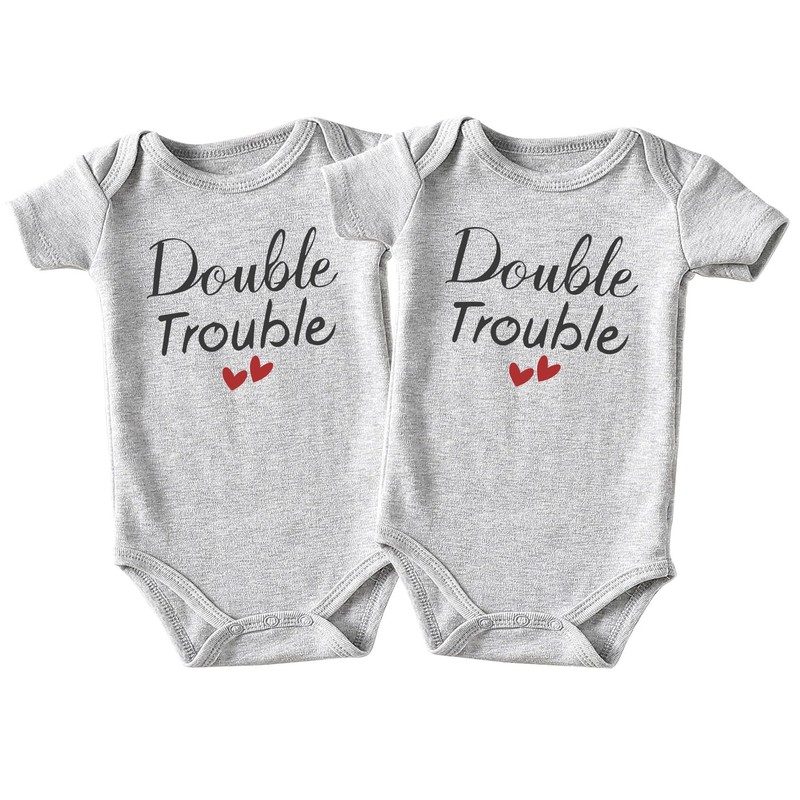 shlrzy Double Trouble Twin Outfits For Boy And Girl Newborn Twins Baby Items Must Haves Twin Baby Gifts gray 6-9Months