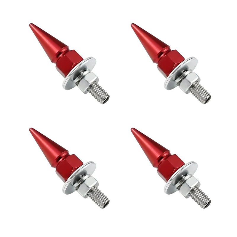 SHMZK 4 PCS Spikes License Plate Screws for Car, Anti Theft Spike Shape Aluminum Car Plate Frame Fastenings Bolt, Cool Licence Plate Screw Set for Car Truck Motorcycle, Car Accessories (Red)