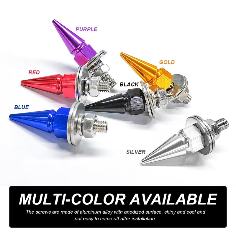 - 【Unique & Stylish】: The fastening screws feature a spike-shaped design, which makes it a unique and eye-catching shape to stand out on the road. Plus, six different colors are compatible with various license plate colors, so that your license plate gets a cool and fashionable artistic sense, thus improving the overall aesthetics of your car.