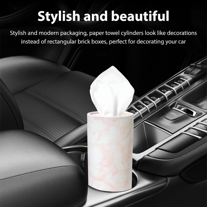 - 【Stylish Decoration】: With a cylindrical design and available in marble texture and solid color styles, this tissue box has a beautiful and stylish look. It can not only decorate your car interior, adding a vivid and unique touch to your vehicle, but also show your elegant taste.