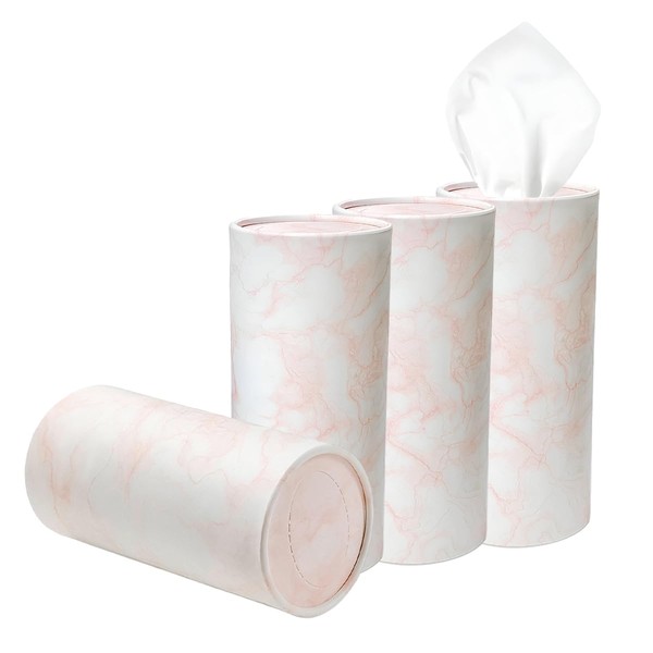 SHMZK 4PCS Car Tissue Holder, Car Cup Holder Travel Tissue Tube Box Container with Facial Tissues Bulk, Convenient Refillable Tissue Cylinder Cup Holder Decor for Most Vehicles (Marble Pink)