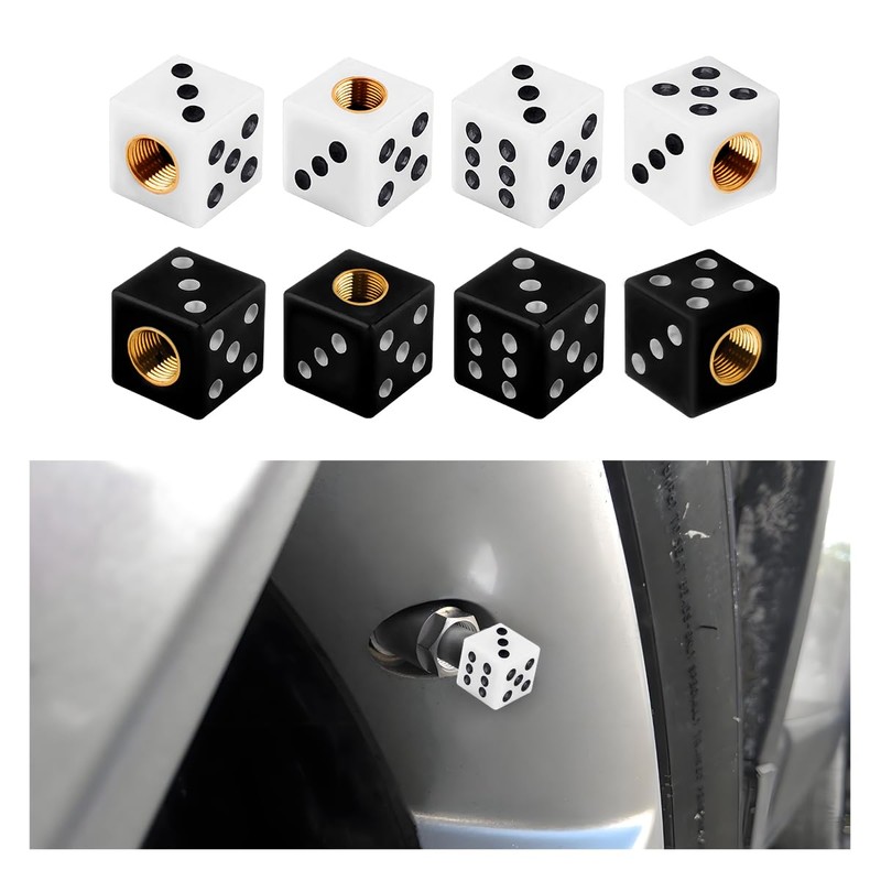 SHMZK 8 PCS Dice Tire Valve Stem Caps, Leakproof Dust Proof Dice Style Wheel Tire Valve Stem Cap Set, Dice Shape Wheel Valve Stem Cover Decor for Car SUV Truck Bike Motorcycle (White+Black)