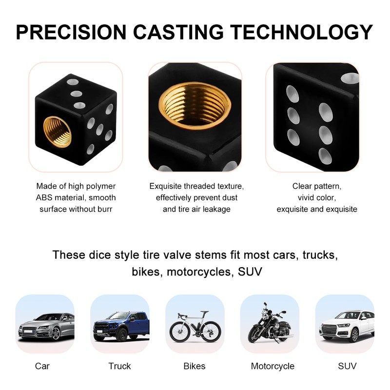- 【Excellent Sealing】: Designed for tire valves, this dice cover seals tightly around the tire valves, ensuring excellent airtightness to keep the gas from leaking. By avoiding air leaks, it helps maintain consistent tire pressure, which improves fuel efficiency and increases driving safety.