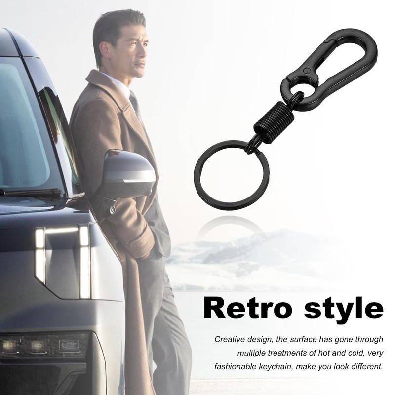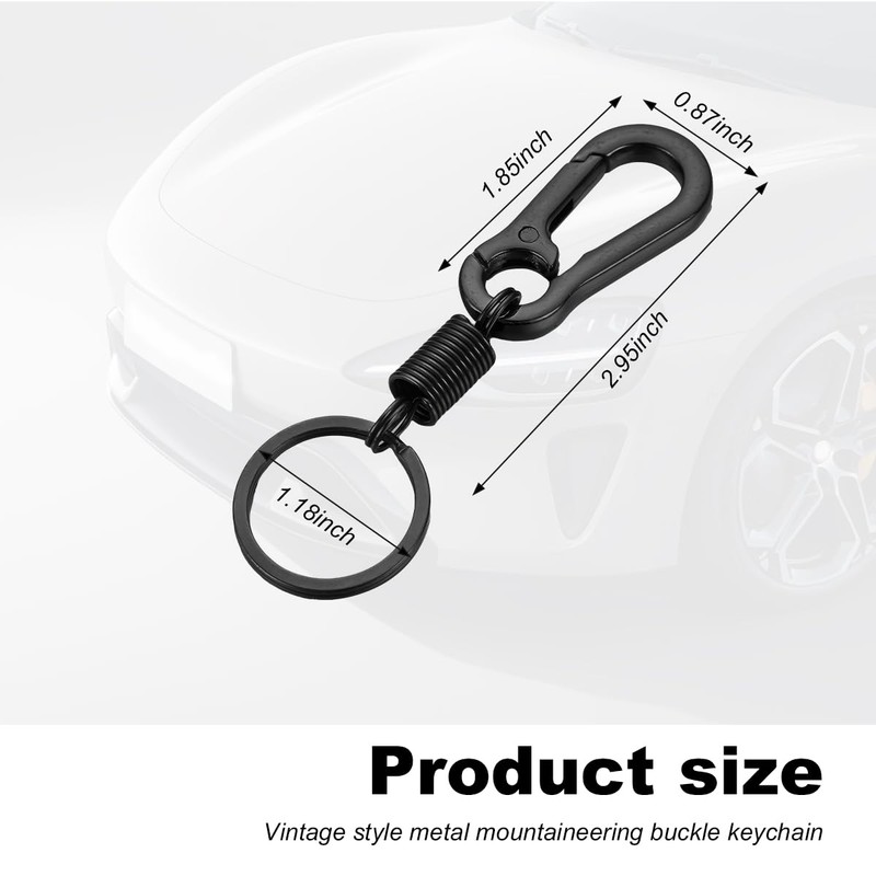 - 【Retro & Elegant】: This carabiner shaped keychain has a simple yet creative look with a strong retro style. The surface has been cold and hot treated and polished many times with delicate and textured workmanship, which is comfortable to hold and won't scratch your belt or pocket. The spring design in the center is more unique and elegant, better decorate your various keys.