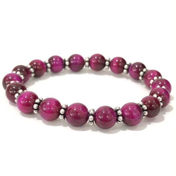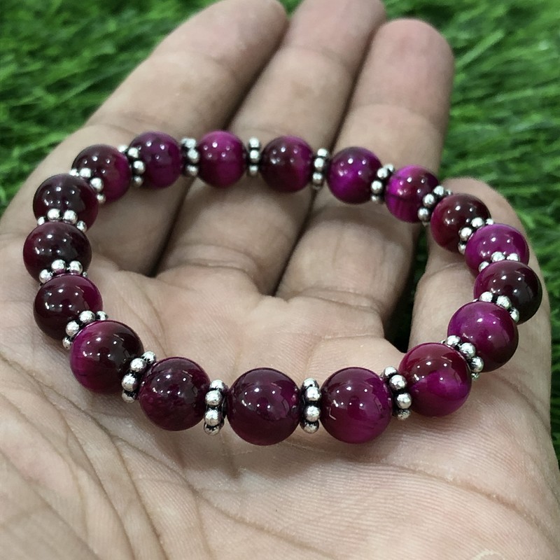 SHNAYA JEWELS AAA Natural PINK STAR TIGER EYE Gemstone 8mm Round Beaded Stretchable Elastic Bracelet With Chakra ,Charm Bracelet ,Handmade Designer Bracelet ,Bye Bye Anxiety Bracelet ,Friendship