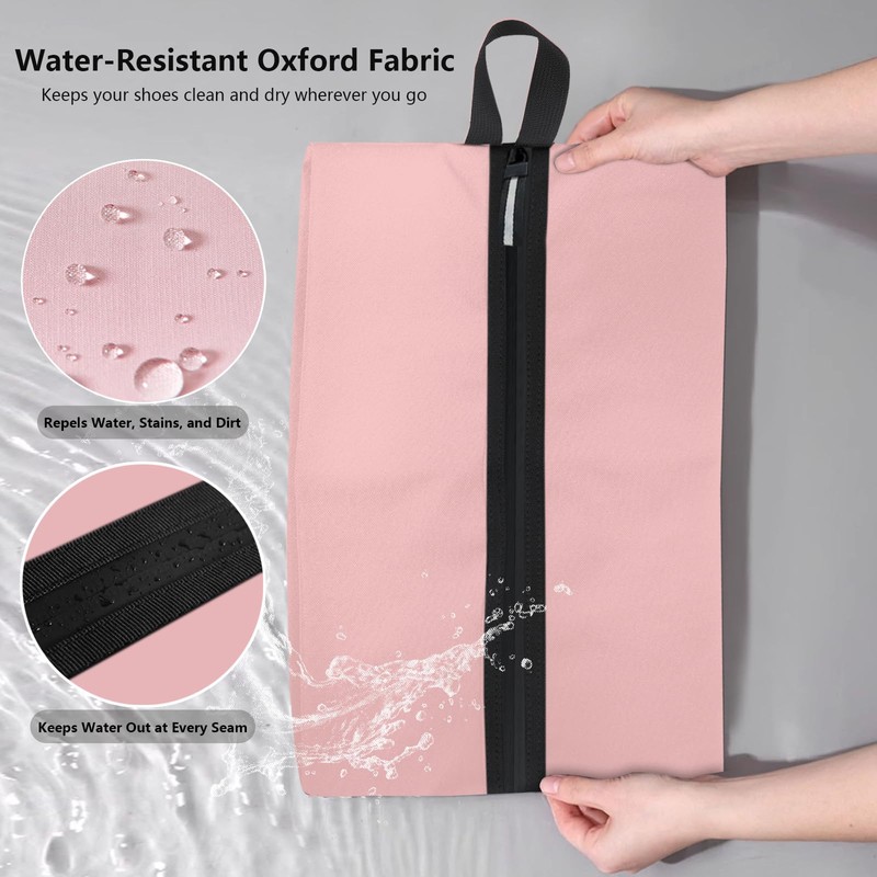Shoe Bags for Travel, Waterproof Oxford Fabric, Zippered Shoe Storage Organiser with Handle, Lightweight Dustproof Shoe Pouch for Trainers, Gym, Business Trip, 16.5 x 9.8 Inches (Shoe Bag Pink)
