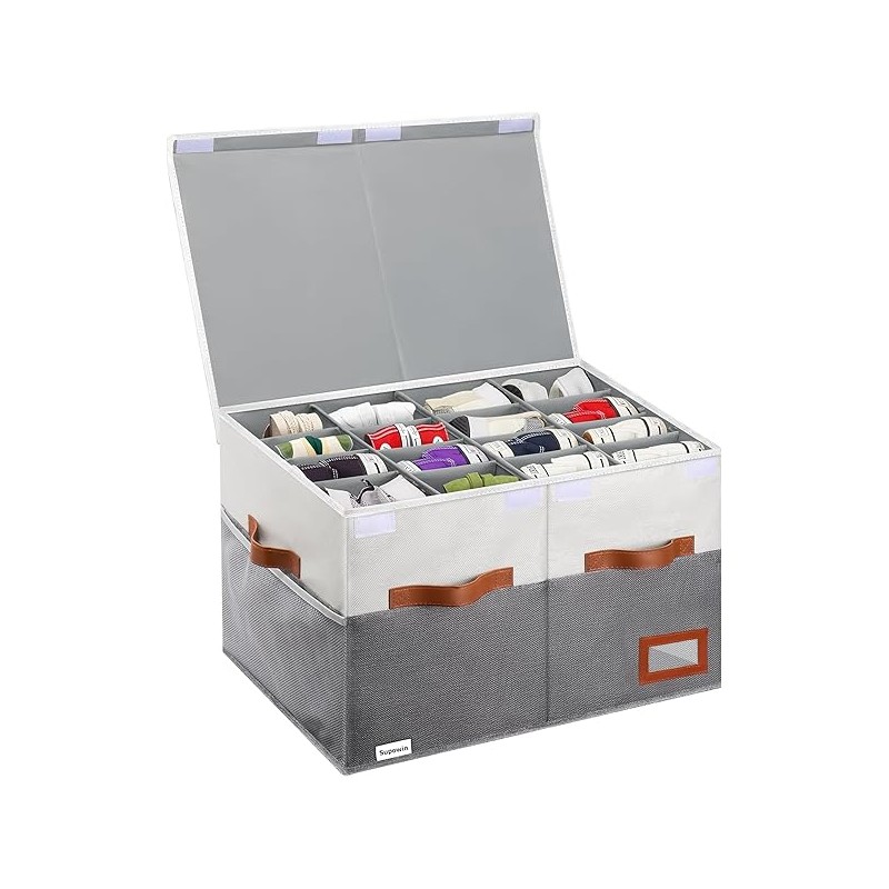 Shoe Organizer for Closet, Foldable Shoe Storage Bins with Lid & Adjustable Dividers, Fabric Shoe Box Storage Containers with Four Reinforced Handles, Fits 16 Pairs, 1 Pack, Grey
