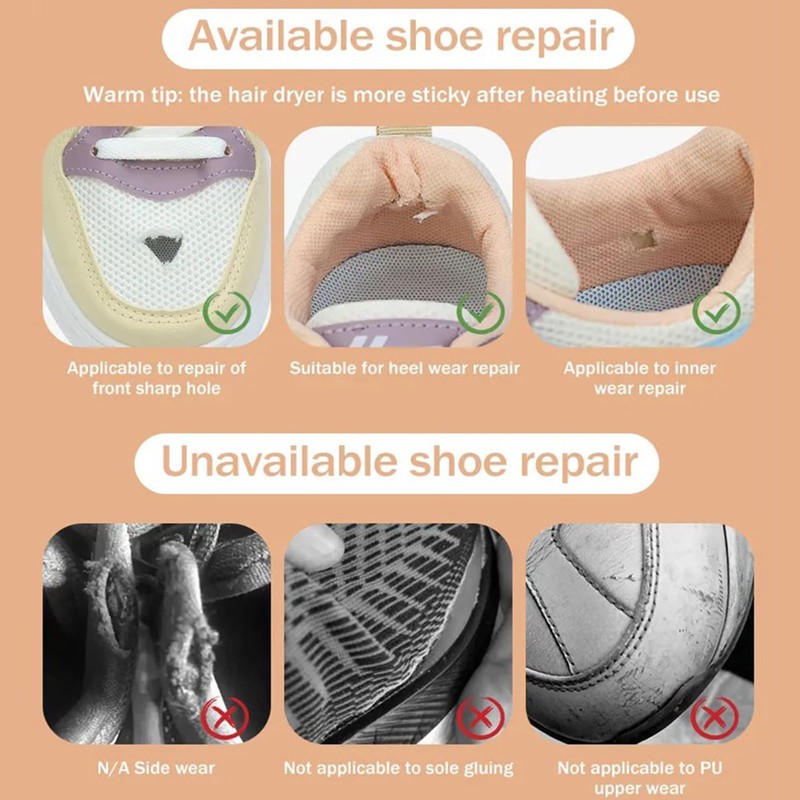 - Effective Tear Prevention: Stops hole expansion, to maintain shoe integrity, and extend their lifespan, by ensuring sturdy protection, and a renewed appearance