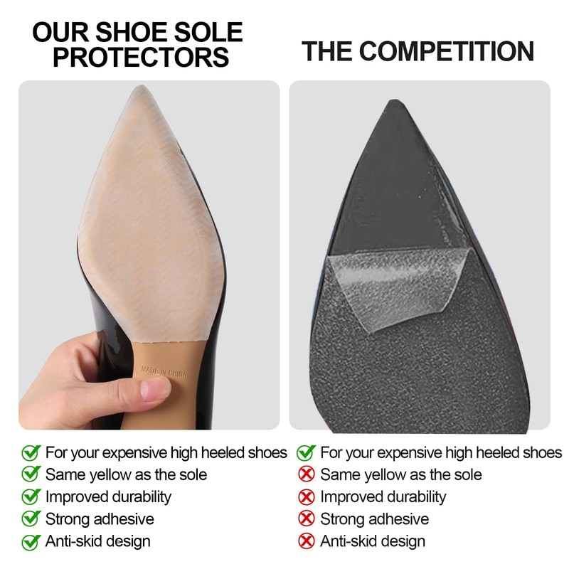 • Save your high heels: If your expensive high heels sole are ruined, please try to use our shoe sole pads to save your high heels, give your shoes a new look!