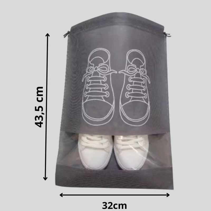- ESSENTIAL Our shoe bags ensure that your shoes are kept separate from other items in your closet or luggage to ensure order and cleanliness. The size of each bag is 43.5 x 32 cm, so you can store any type of shoes such as sneakers, flip flops, moccasins, dance shoes, high heels, etc.